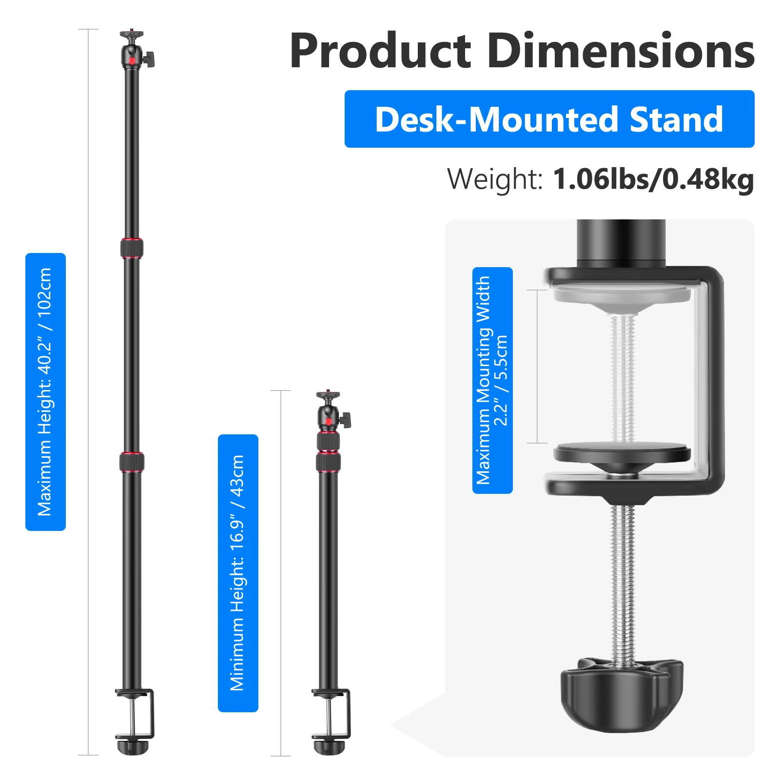 Neewer настольная Монтажная стойка, регулируемая 16,9-40,2 дюймовая настольная осветительная стойка, клипса, подставка с шаровой головкой, адаптер для видео света/кольцевого света/Зеркалок, алюминиевый сплав, для фото-и видеосъемки в реальном времени