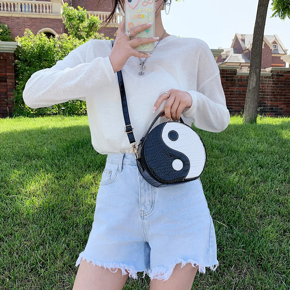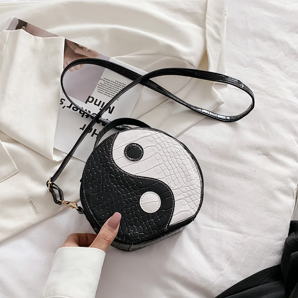 Женская маленькая сумка через плечо с рисунком аллигатора Tai Chi, круглая женская сумка через плечо из мягкой искусственной кожи, Женская круглая сумка