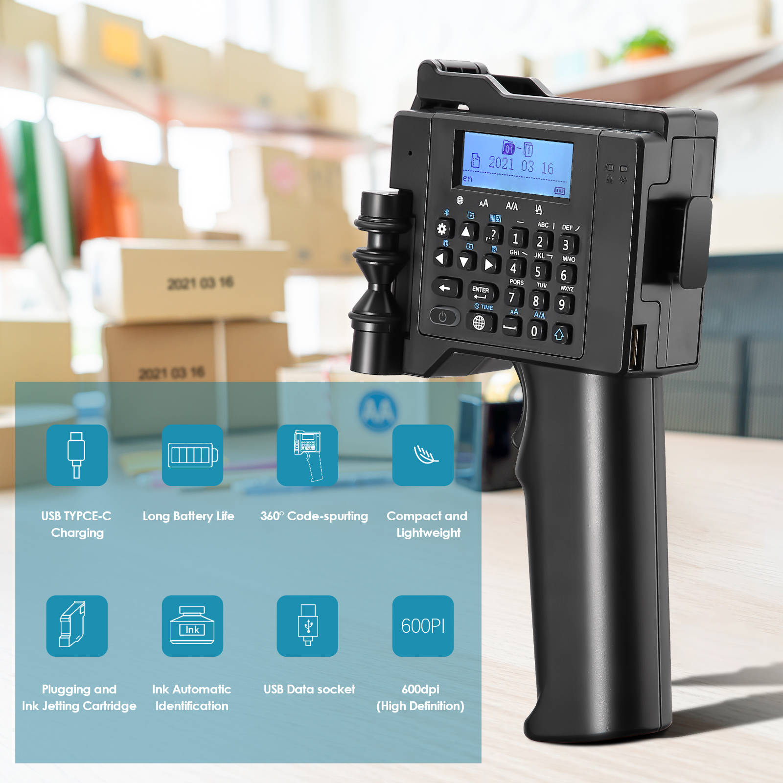 Портативный принтер PT2000, портативный струйный принтер с быстросохнущим чернильным картриджем для этикеток/даты/времени/штрих-кода/qr-кода/логотипа