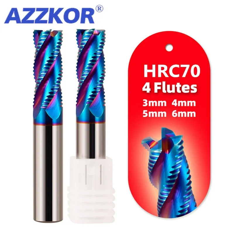 Фрезерный резак, сплав, покрытие, Вольфрамовая сталь, инструмент с ЧПУ, фрезерный станок, 4 лезвия, контурные фрезы, AZZKOR HRC70, фреза для металла