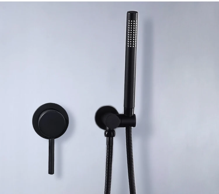 Матовый черный душевой кран Набор скрытый настенный встроенный смеситель для ванной комнаты Vlave ручная душевая головка черная латунь
