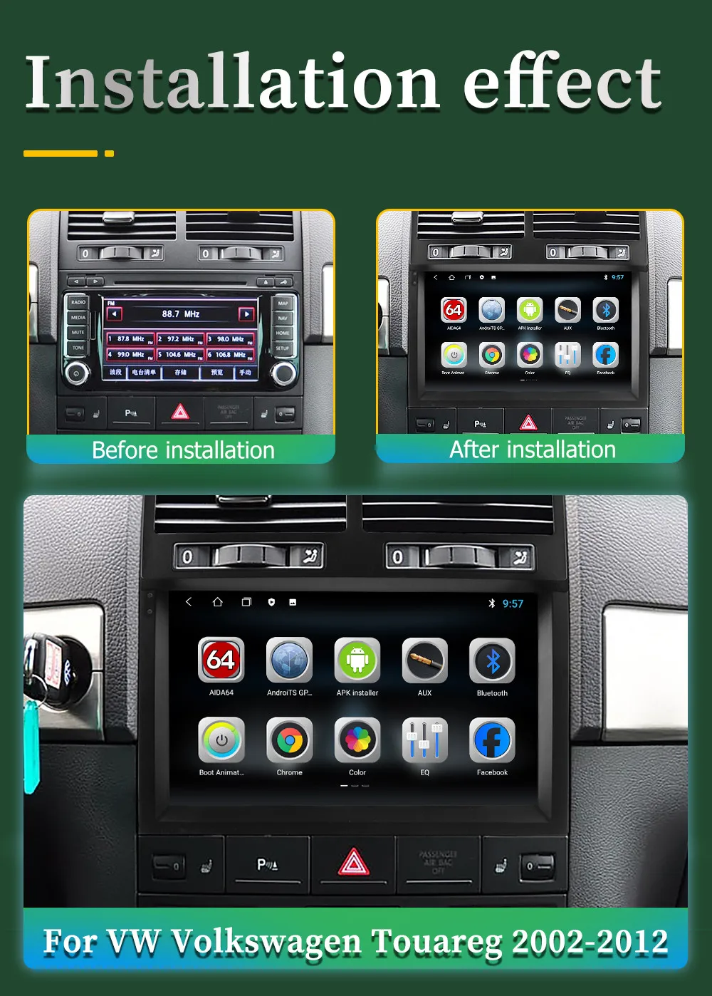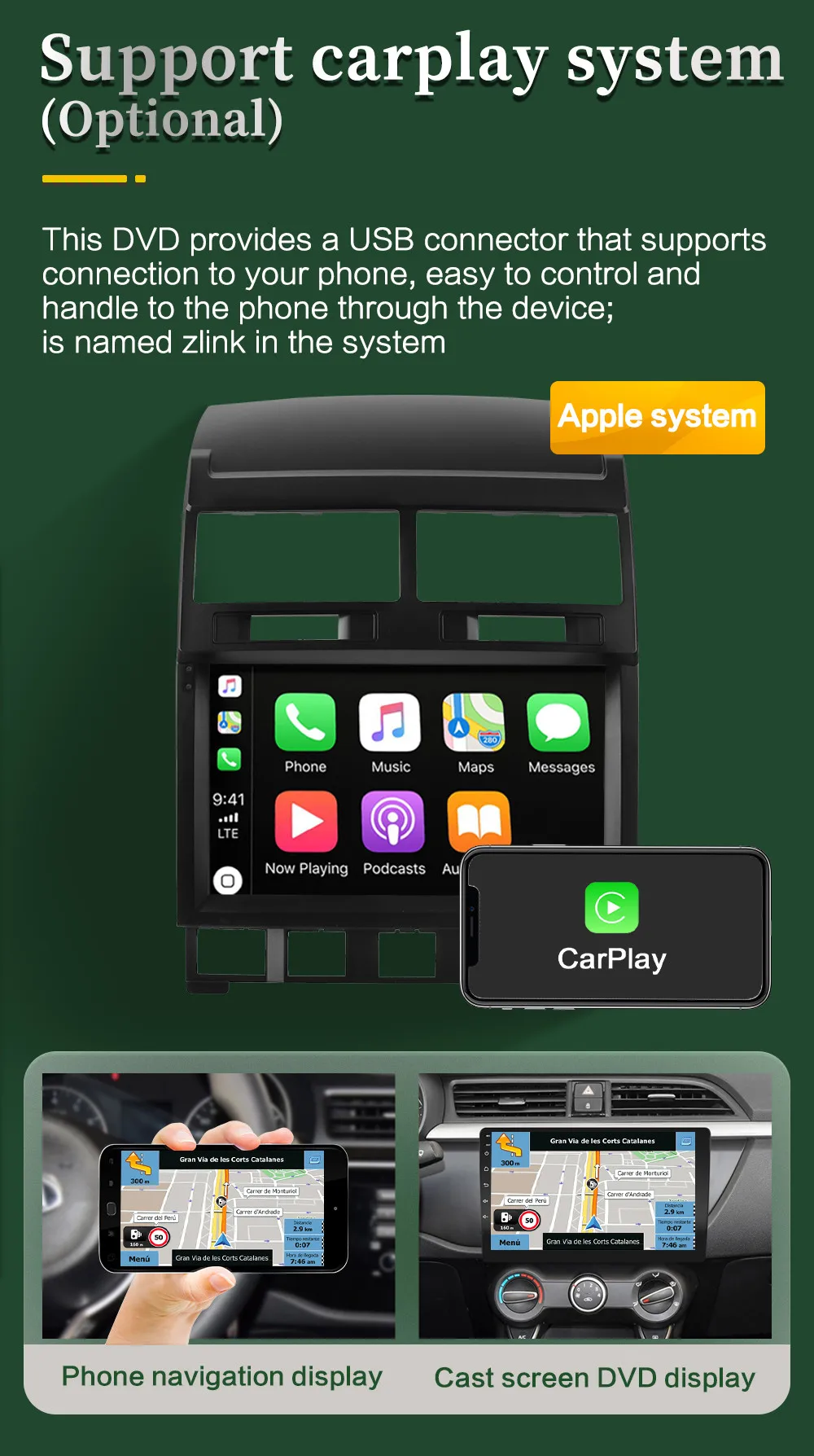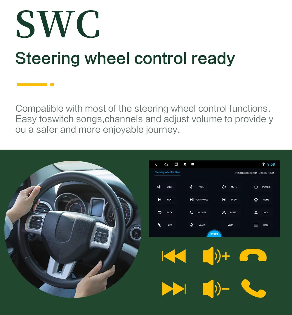 Продукт поддерживает кнопки управления рулевым колесом, поддерживает неоригинальные камеры (поддерживает несколько фазовых механизмов), поддерживает оригинальные функции автомобиля, такие как настройки кондиционирования воздуха (требуется CANBUS, более оригинальные функции автомобиля связаны с оригинальным автомобилем) подходит ли он для Вашего автомобиля? 1. Проверьте соответствующую модель и год продукта и автомобиля 2. Сравните положение установки продукта с автомобилем, который необходимо обновить 3. Проверьте, подходит ли интерфейс кабеля питания для вашего автомобиля (Примечание: Не все интерфейсы оригинального автомобиля должны быть подключены) 4. Если вы все еще не можете определить, пожалуйста, пришлите нам оригинальное место установки автомобильного радио (спереди) и оригинальное изображение обратного радиоинтерфейса, чтобы мы могли поддерживать Разделенный экран приложения, Сделайте ваше использование более привлекательным, поддержка более новых приложений.