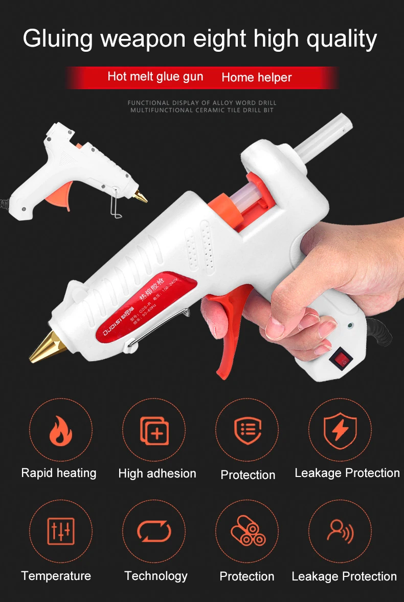 1. Многофункциональный термоклеевой пистолет, сопло из чистой меди, без утечки клея, независимый переключатель
