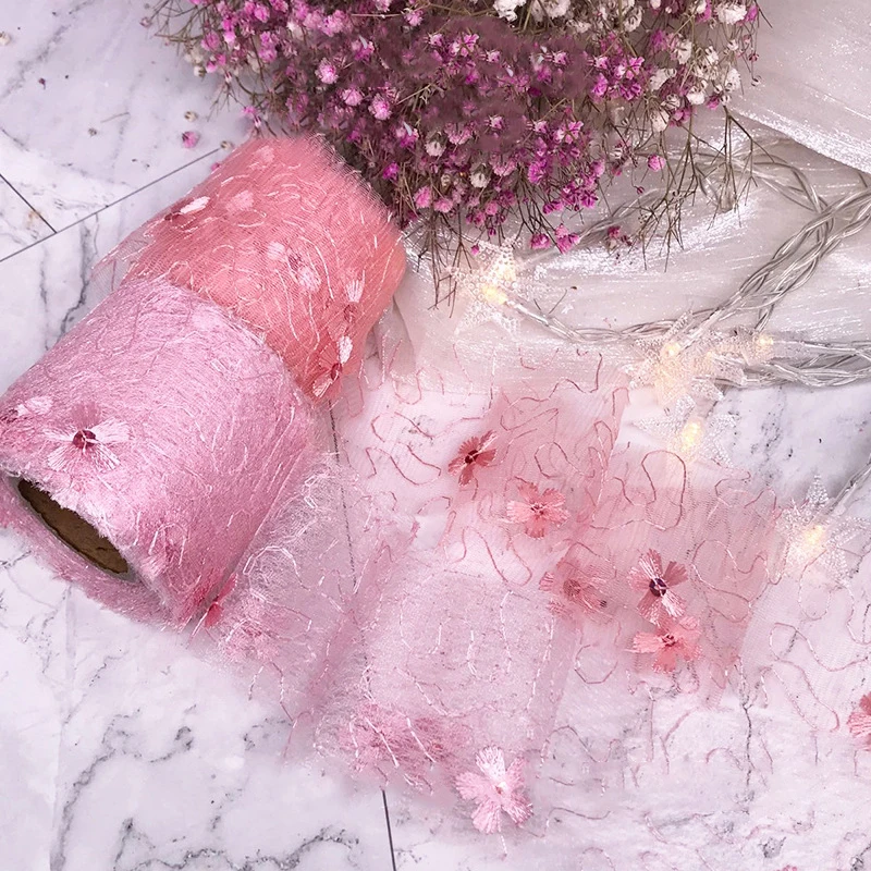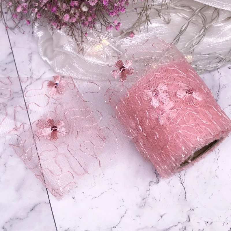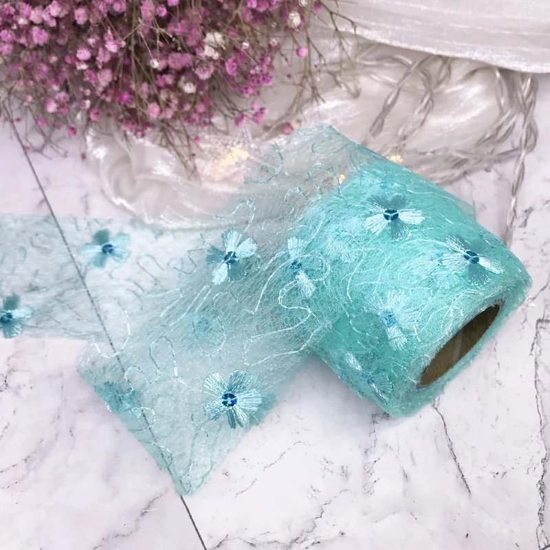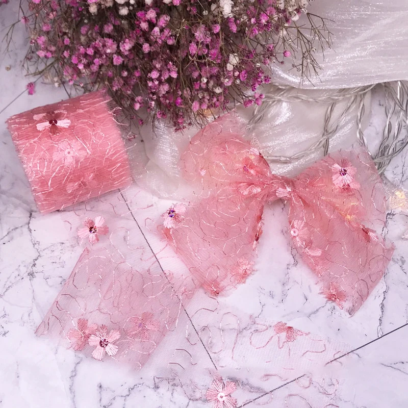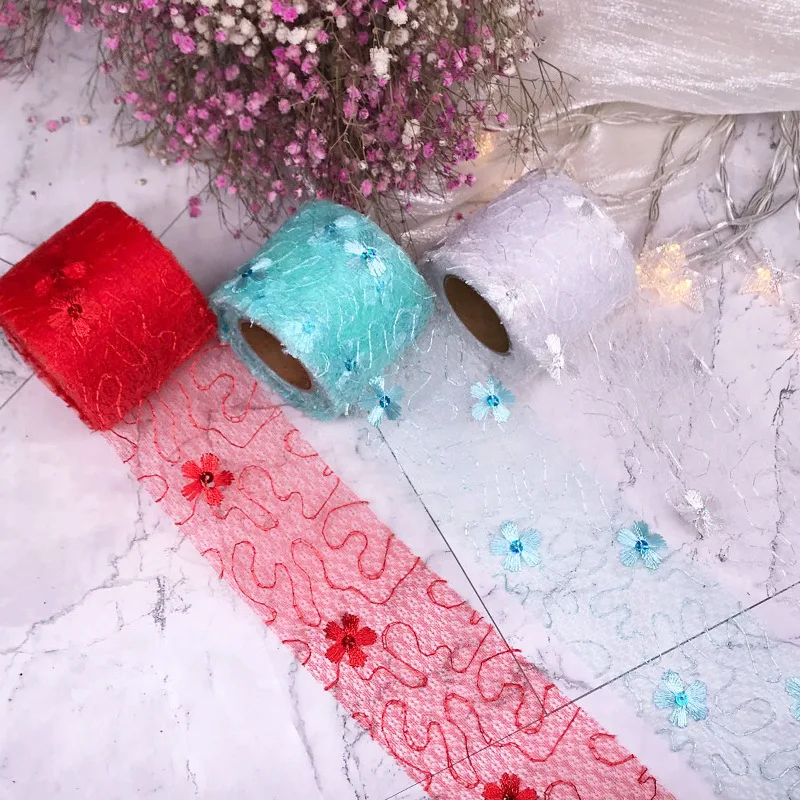 5 ярдов 6 см Чистая Пряжа Цветочная вышивка органза пятнистая лента DIY Поделки бант для волос Подарочный букет упаковка Швейные аксессуары