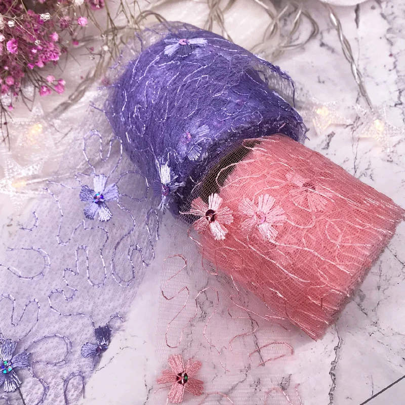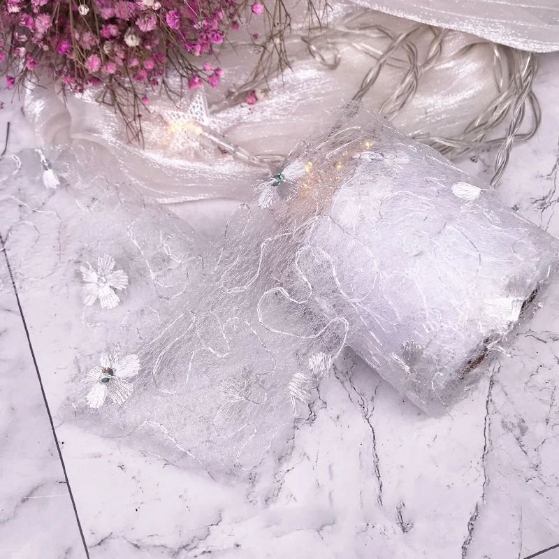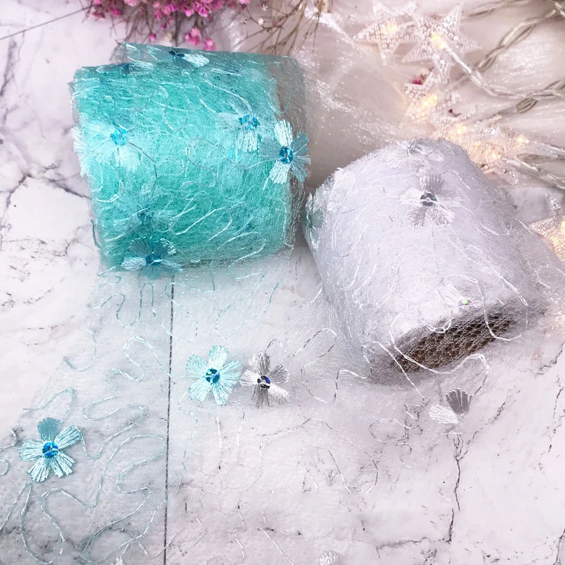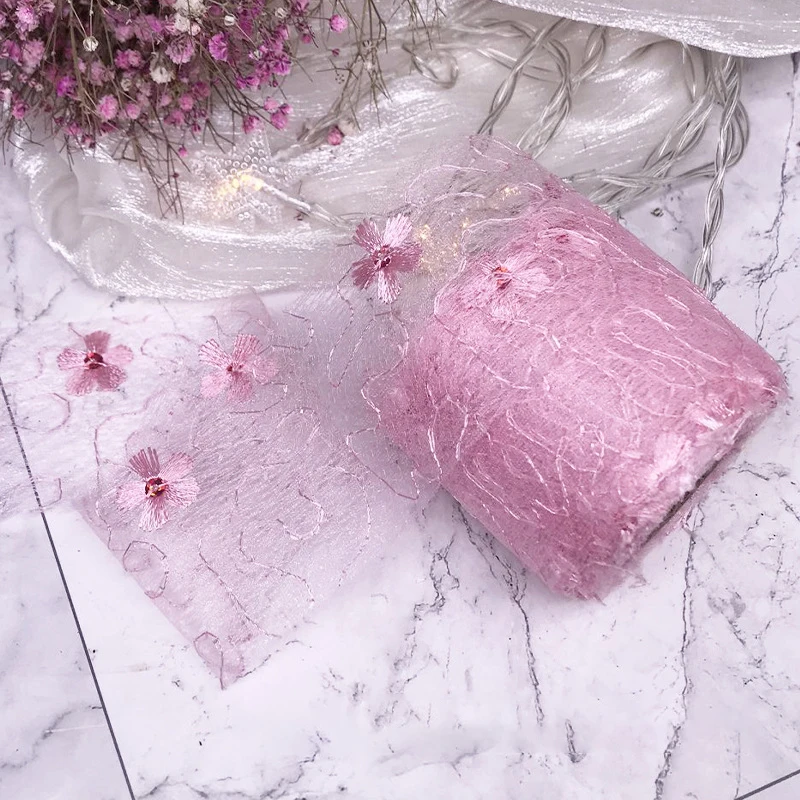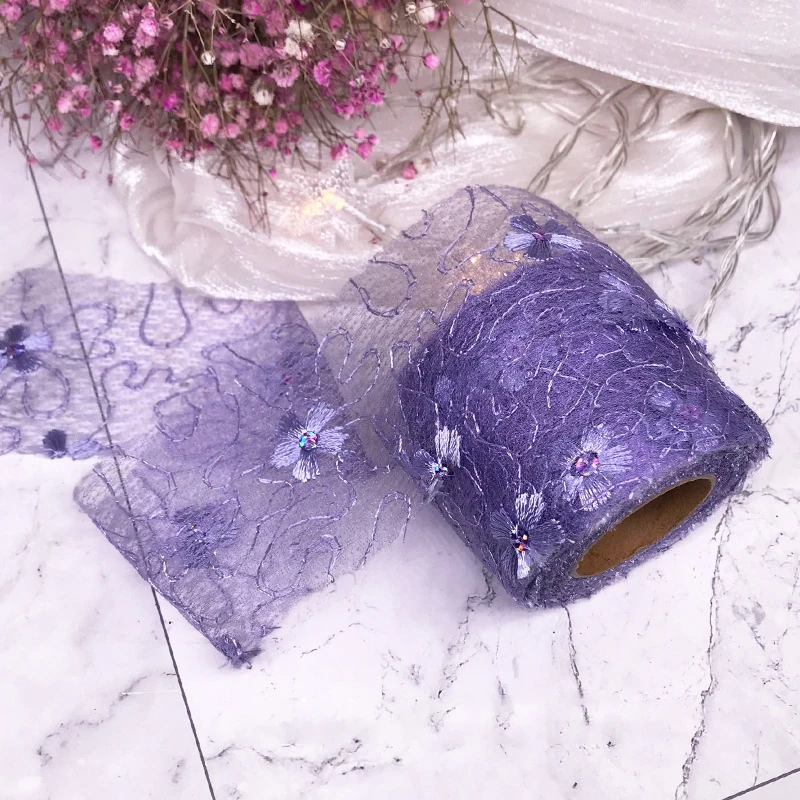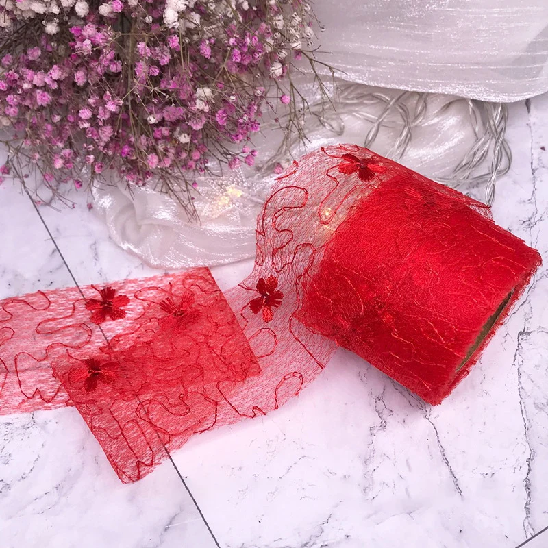 5 ярдов 6 см Чистая Пряжа Цветочная вышивка органза пятнистая лента DIY Поделки бант для волос Подарочный букет упаковка Швейные аксессуары