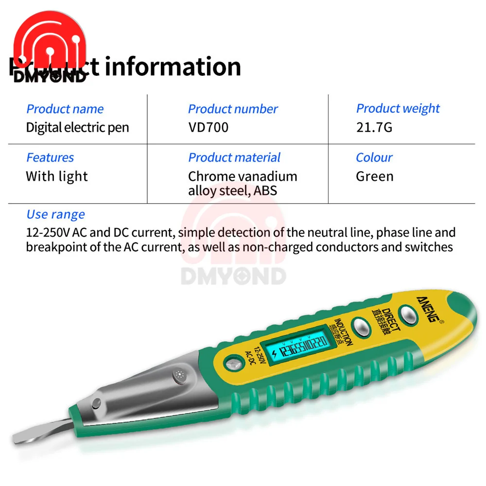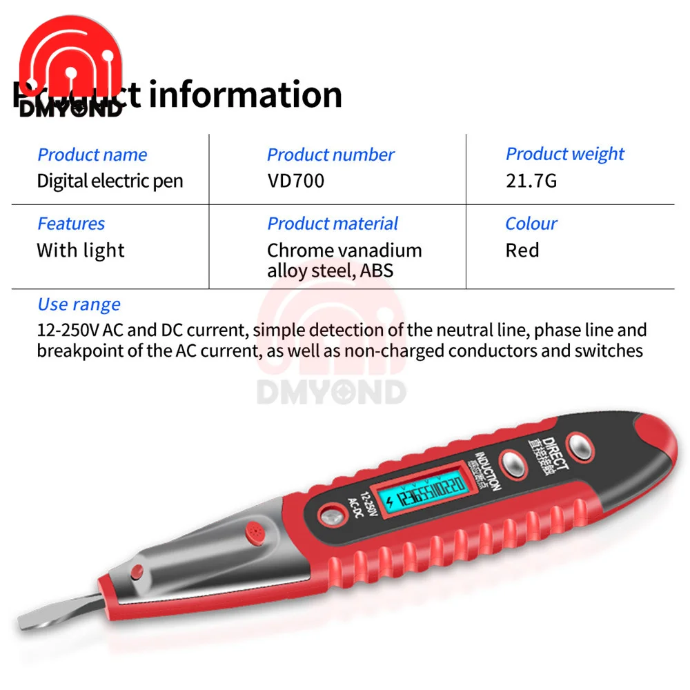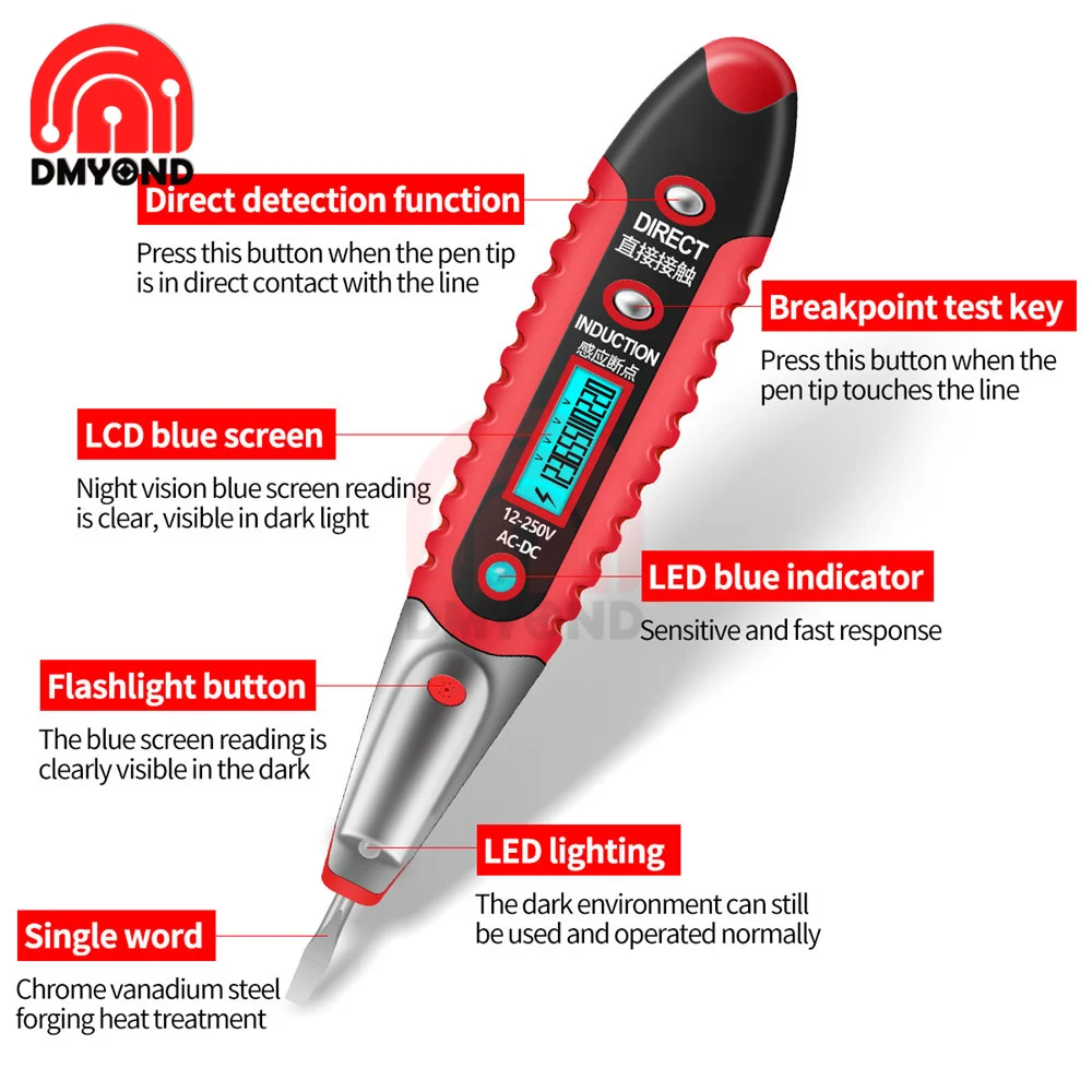 AC DC Цифровой тест карандаш тест er электрический детектор Напряжения Ручка ЖК-дисплей отвертка 12-250 В для электрика инструменты
