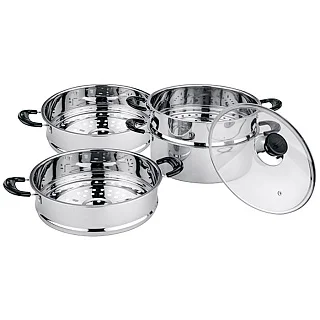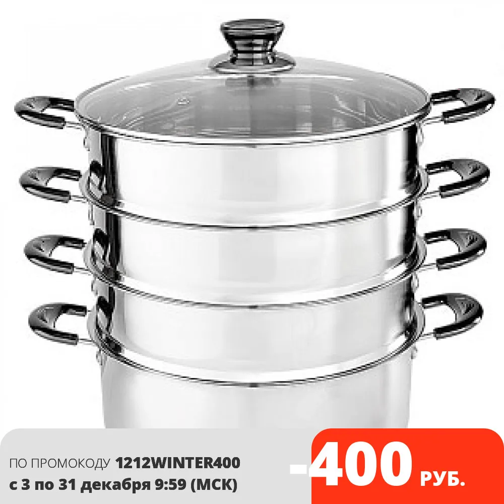 Пароварка мантоварка 4-х уровневая, выполнена из высококачественной нержавеющей стали. Индукционное дно, которое быстро и равномерно накапливает тепло и так же равномерно передает его приготовляемой пище. Прозрачная стеклянная крышка позволяет следить за приготовлением пищи. Благодаря особому дизайну крышки пар, образующийся в процессе приготовления, собирается в центре крышки и, конденсируясь, капает на дно мантоварки. Термостойкие бакелитовые ручки. Специальная форма, исключающая скопление остатков пищи и жира. Обод, препятствующий переливанию жидкостей через край. Быстрый нагрев пищи, длительное удержание тепла. Минимальные потери минеральных веществ, витаминов и вкусовых качеств. Пригодна для использования на всех типах кухонных плит, включая индукционные. Подходит для мытья в посудомоечной машине.
