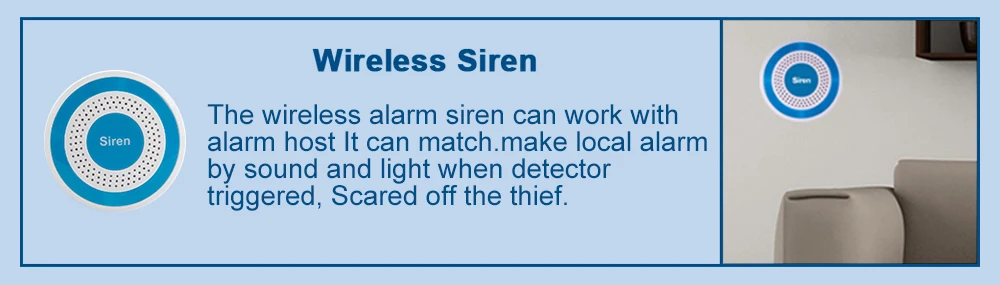 Пользователи могут добавить различные аксессуары в соответствии с их потребностями для создания системы сигнализации. Частота беспроводной связи, используемая этой панелью сигнализации: 433 МГц, формат кода: eV1527