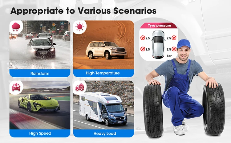 4. Прочный и прочный: оснащен автомобильным аккумулятором, сменным алюминиевым/резиновым стержнем клапана, который выдерживает холодную, горячую и стойкую коррозию, и высокоточным воздушным клапаном для предотвращения утечки воздуха, этот датчик обеспечивает превосходную стабильность и производительность.