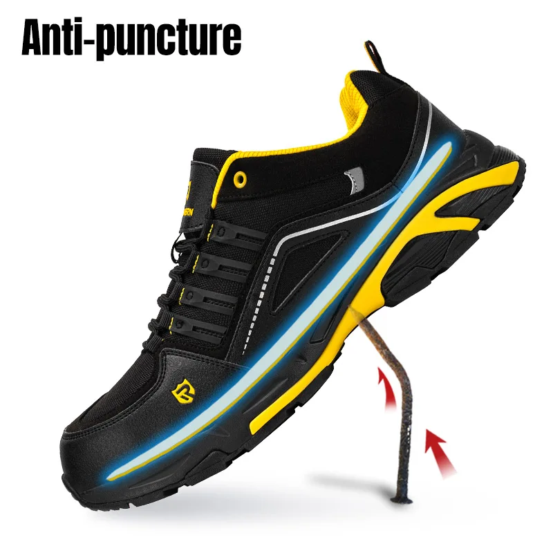 LARNMERN/Мужская Рабочая защитная обувь со стальным носком; Легкая дышащая обувь с защитой от Разбивания и проколов; Антистатическая Нескользящая Рабочая обувь