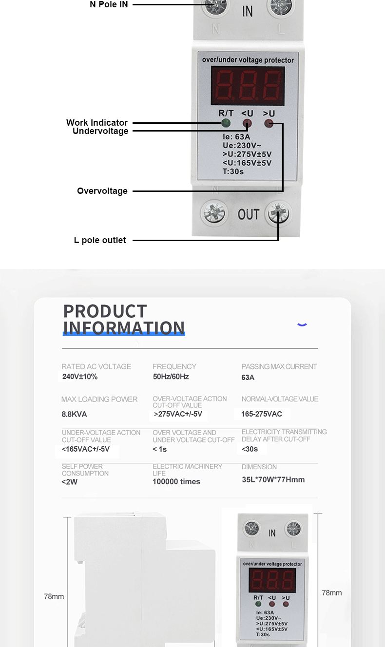 Перегрузка напряжения: 275 В ± 5 В