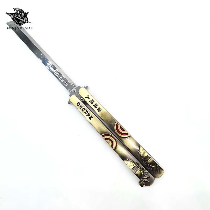 Uzumaki Narutoo Balisong модель Uchiha Sasuke Susanoo тупой нож-бабочка металлический тренажер для коллекции Аниме