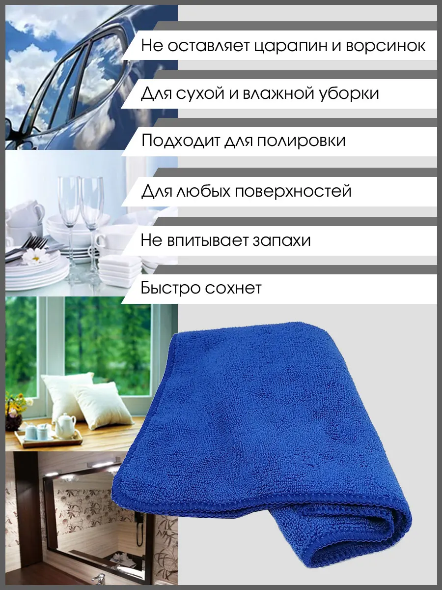 Microfiber perfectly absorbs water, leaving no divorce, scratches and pile.