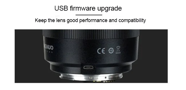 Оснащен интерфейсом USB, вы можете загрузить новую прошивку с официального сайта Yongnuo, чтобы завершить обновление операции самостоятельно, так что объектив поддерживает хорошую производительность и совместимость.
