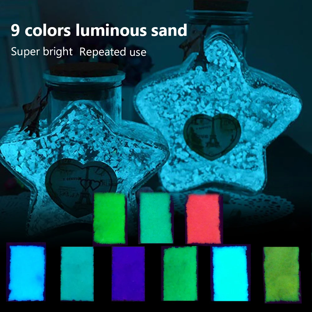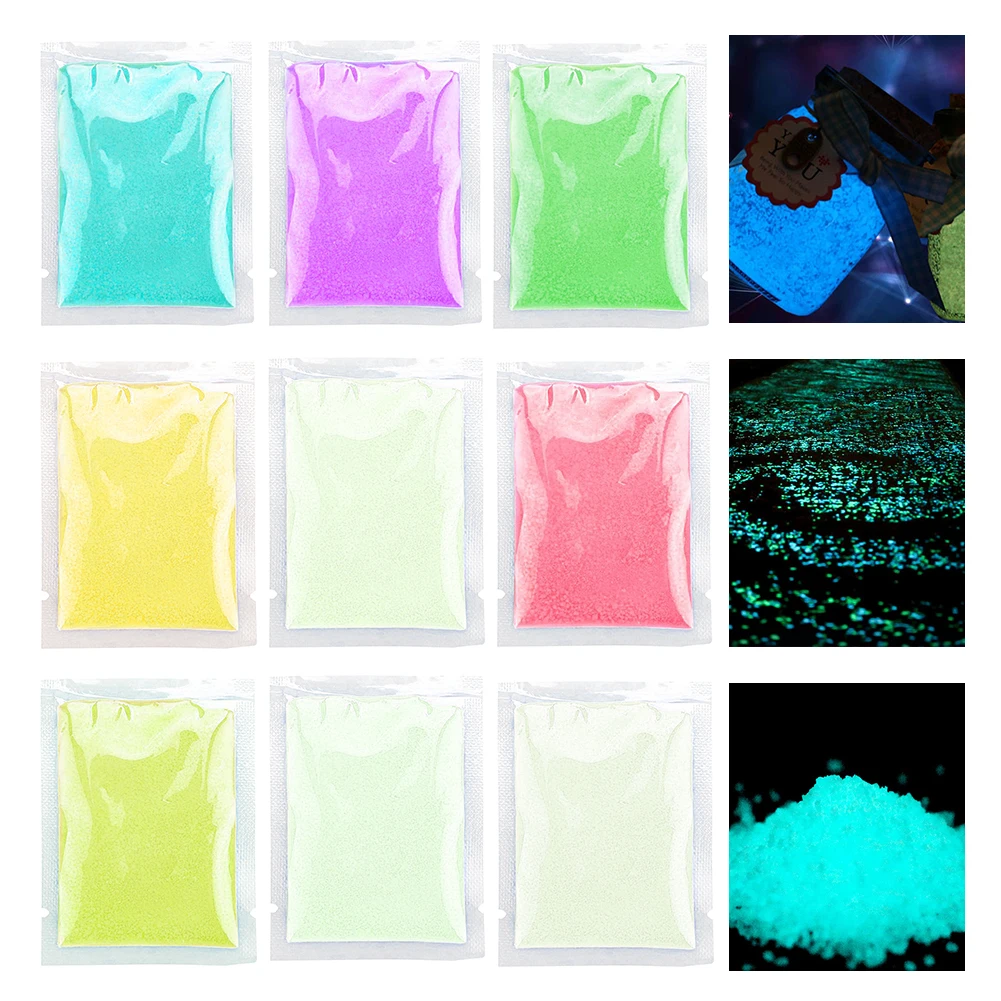 Светится в темноте пигмент гравия песок зерна порошковый флуоресцентный светящиеся частицы крошечные камни.