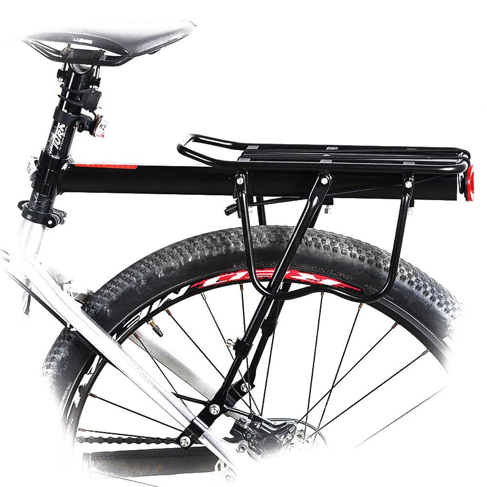 Стойка для велосипедных грузов изготовлена из высококачественного алюминиевого сплава, прочная, износостойкая и прочная, имеет длительный срок службы и стабильную структуру, которая может выдерживать до 50 кг тяжелого материала. Предполагаемая несущая способность составляет 25 кг.