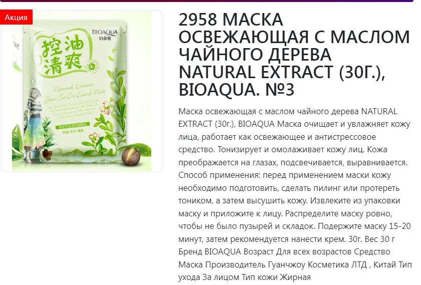зеленого чая Bioaqua NO.BQY8487 . 30гр. 1785816 (7)