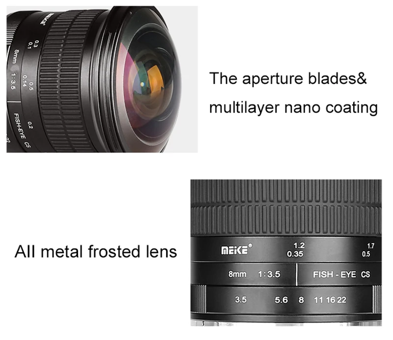 Meike 8 мм f/3,5 ультра широкий угол ручной фокусировки прямоугольник Рыбий глаз объектив подходит: Canon/Nikon/Sony/Olympus/Panasonic/Fujifilm (беззеркальная камера)