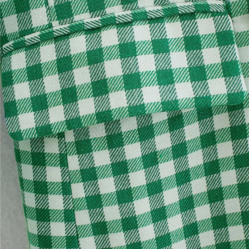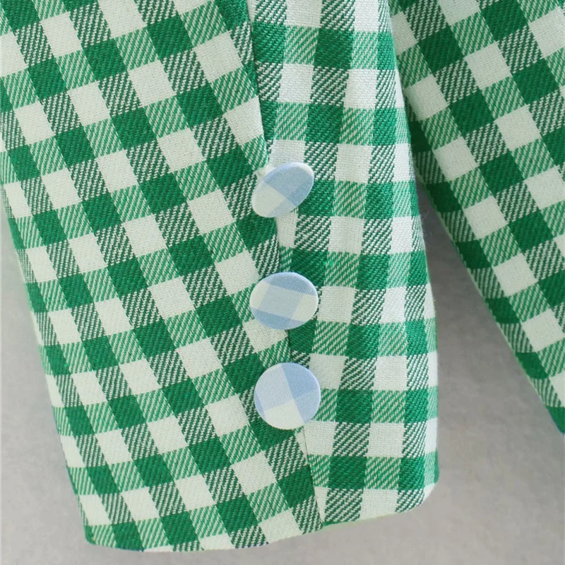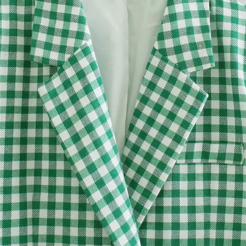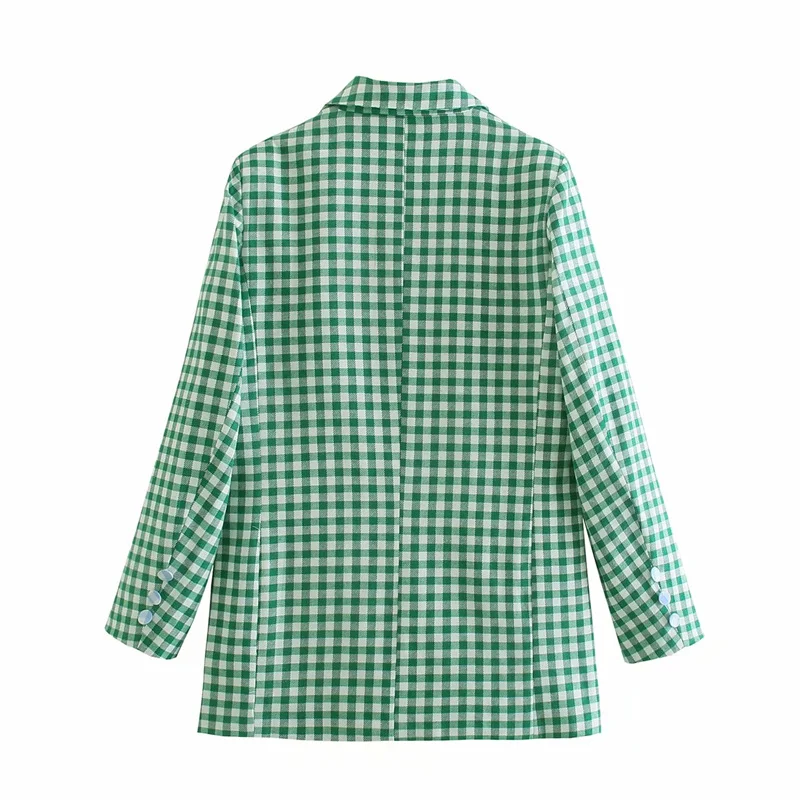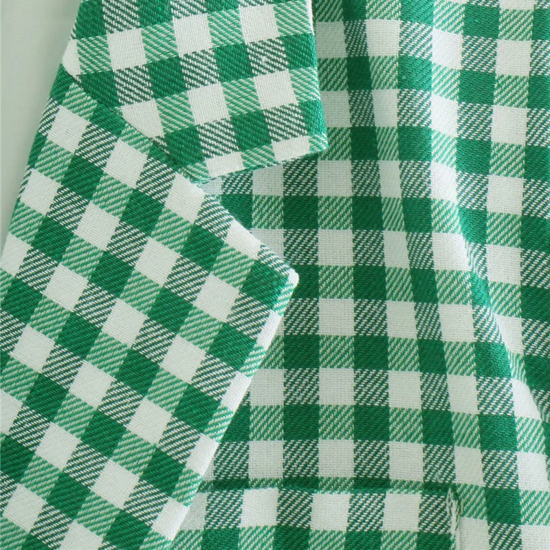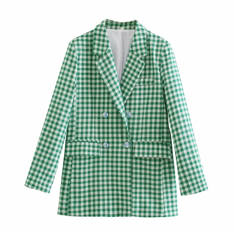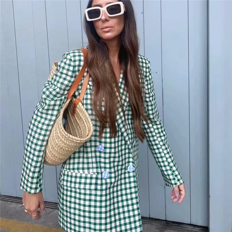 Женский Зеленый свободный клетчатый Блейзер Vinage, весенний Модный женский двубортный блейзер в ломаную клетку, 2021