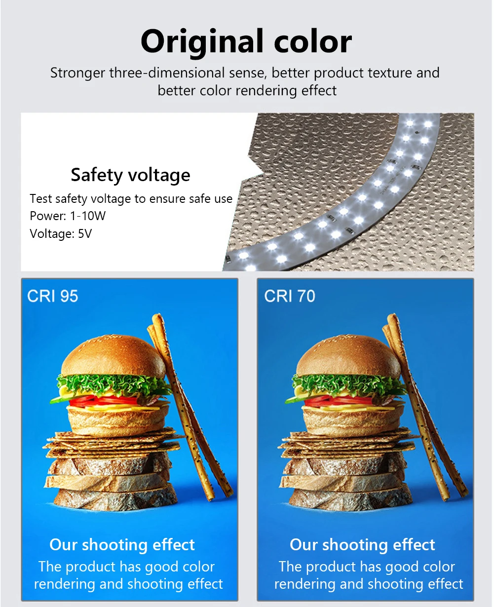 Высококачественный светильник с бусинами. Интегрированный кольцевой светильник доска с 96 шт высокое качество SMD светодиодный бусины. Высокий CRI ≥ 95 может представить Настоящее Изображение объектов съемки. Между тем, внутренняя стенка коробки для фотостудии-ткань с текстурой камня. Светильник s может быть распределен на каждом углу тента для съемки, чтобы производить более мягкий и равномерный светильник.