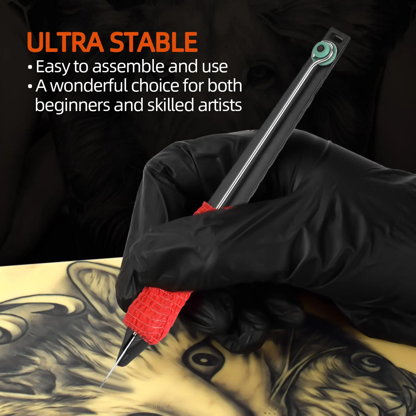 -Трехступенчатая конструкция пряжки: наш ручной штамп и набор для тату в стиле «палочка», держатель для ручек, игла, имеет трехступенчатую конструкцию крепления, которая может безопасно и надежно подключить любую подходящую иглу для татуировки, что более удобно и безопасно для тату-художника.