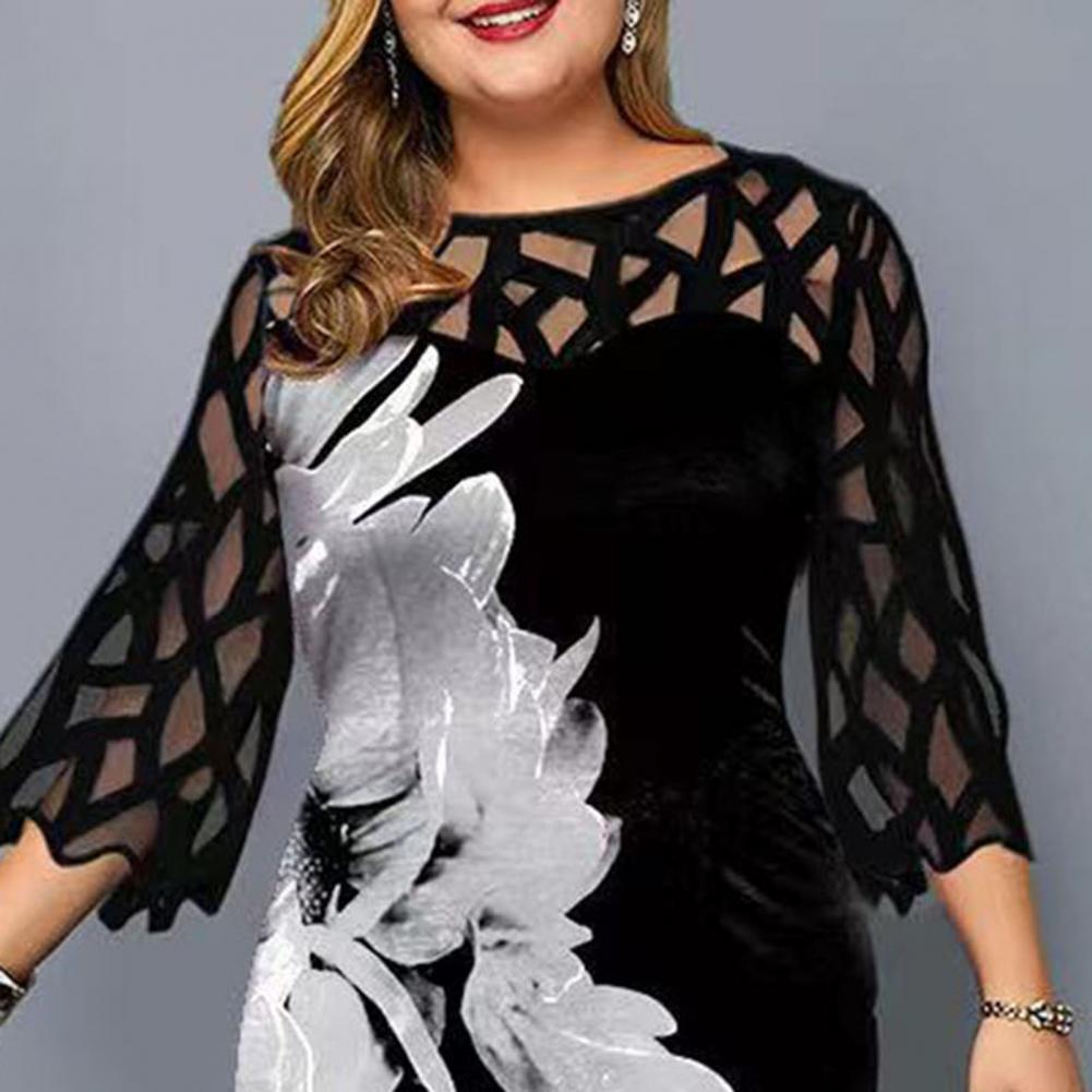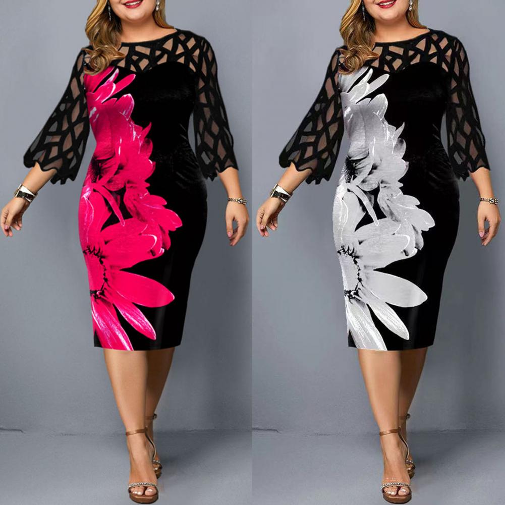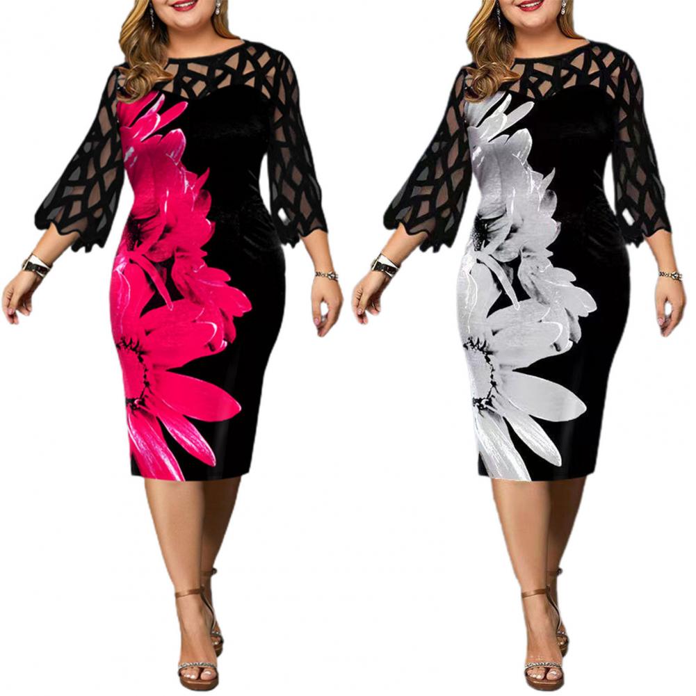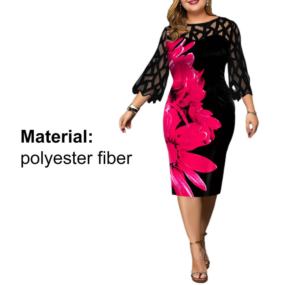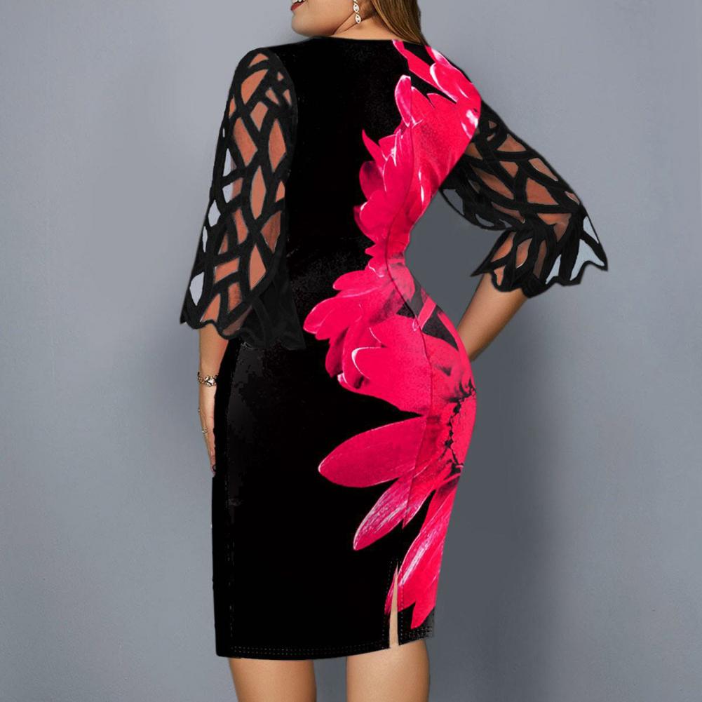 Облегающее платье идеально подходит для демонстрации изгиба вашего тела. Дизайн с круглым вырезом, сетчатым лоскутом, рукавом 3/4 и цифровым цветочным принтом придает этому платью Модные элементы.