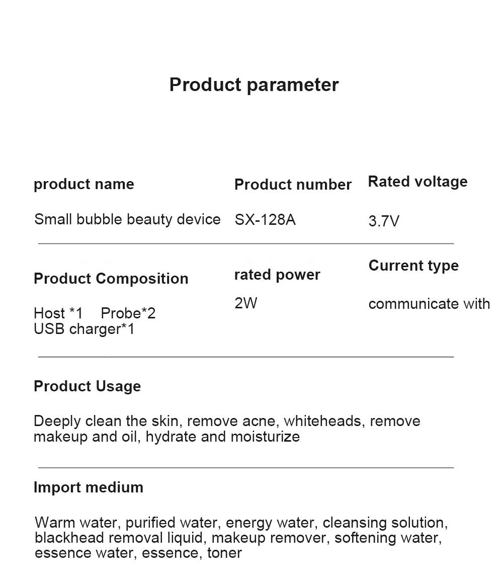 ✔5 сменных всасывающих головок-5 сменных зондов можно использовать для решения различных проблем с кожей, таких как очистка черных точек, удаление грязи, уменьшение омертвевшей кожи и тонких линий. В соответствии с вашими потребностями, он также может использоваться для массажа кожи, создания v-образной формы лица и повышения эластичности кожи.