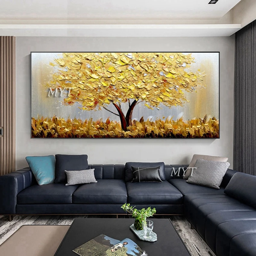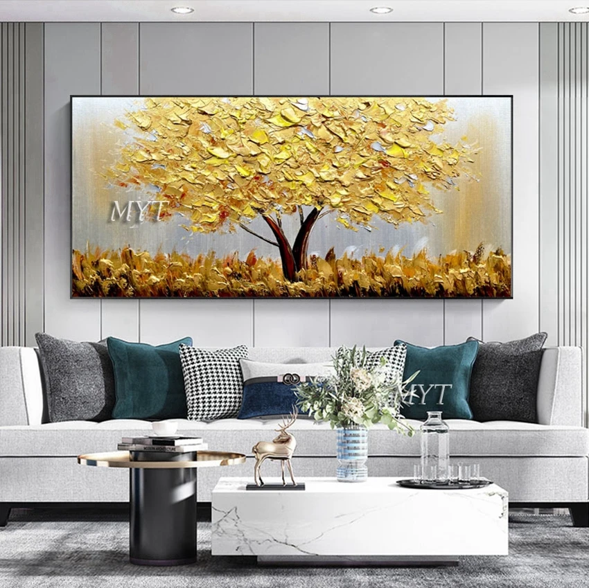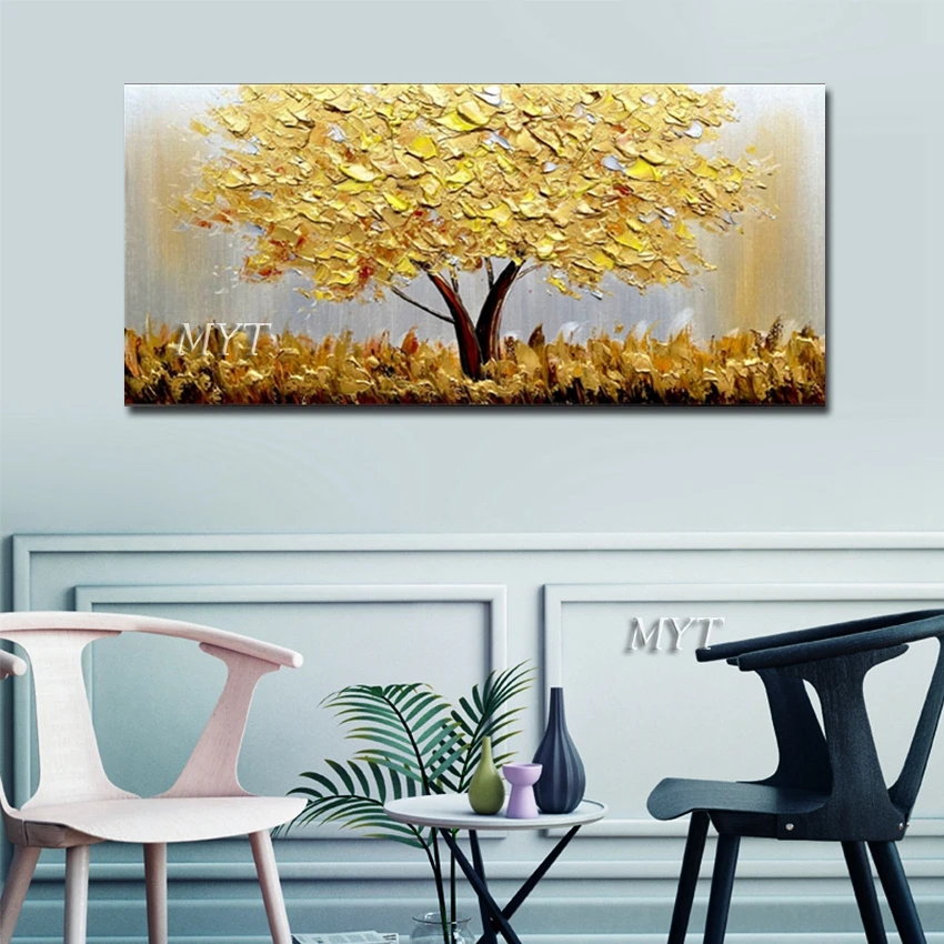 3D толстый нож абстрактная картина маслом Золотые деревья Декор стены картины художественное украшение на холсте Дешевое искусство для гостиной