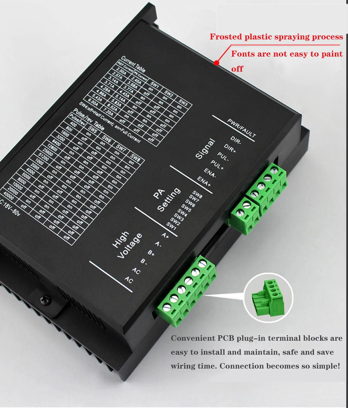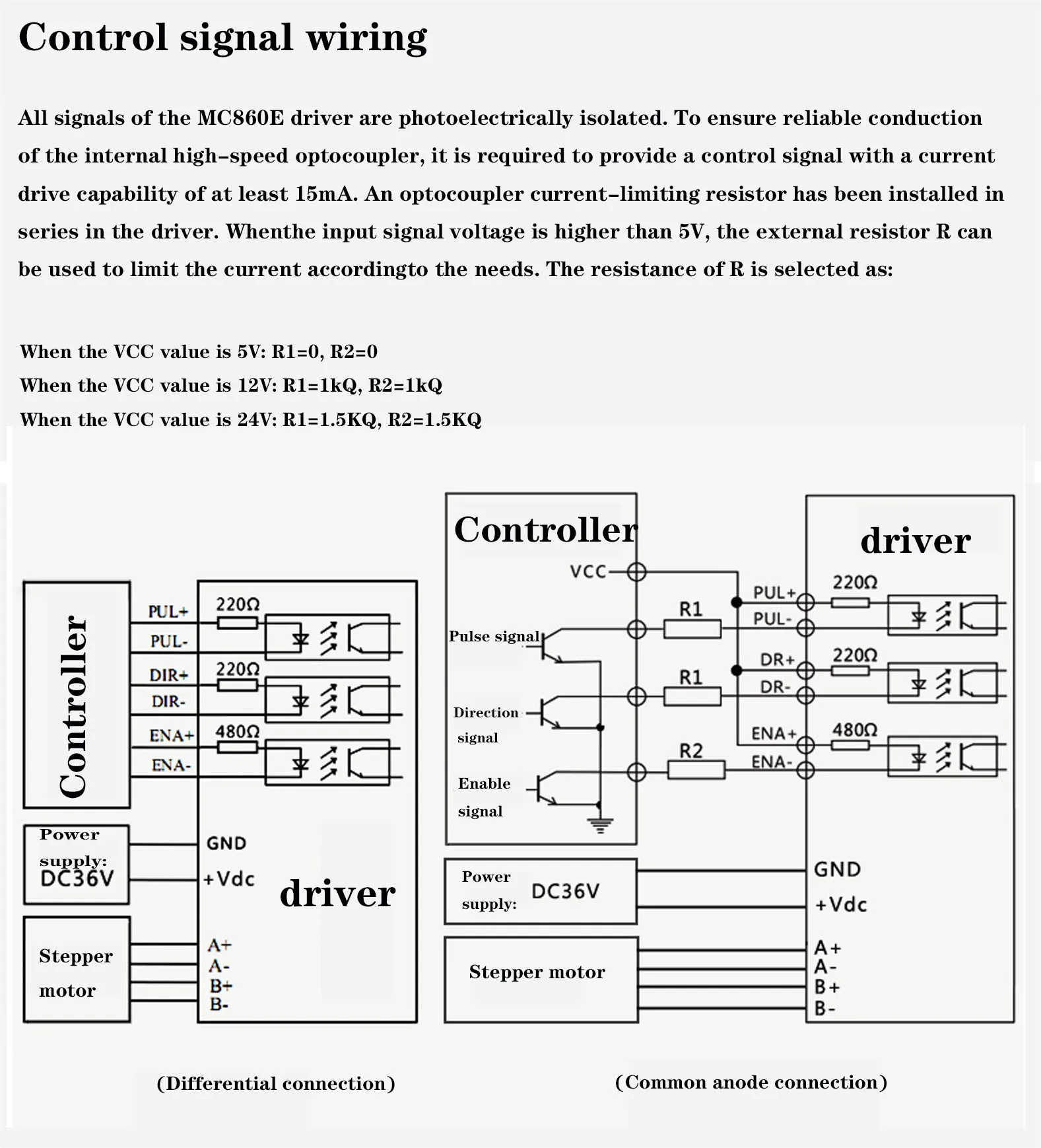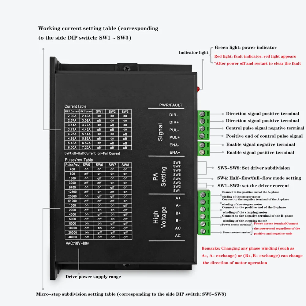 Старый двухфазный 86 шаговый Драйвер MC860E скоро будет прекращен. По умолчанию модель доставки является обновленной версией MC860G (сигнал 5V-24V) для прямой замены MC860E. Размер и использование точно такие же, с лучшей производительностью и более низкой скоростью отказов.