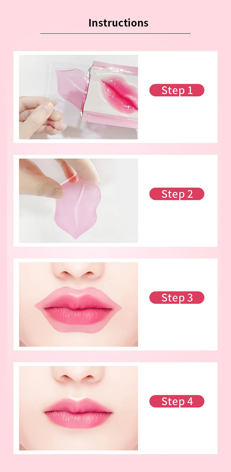 Удалите мембрану для губ, мембрана для губ распределяет губы через 20-30 минут, ее можно сбросить. После принятия пленки мягко массируйте нижнюю губу, ингредиенты эссенции, чтобы облегчить проникание. Используйте 2-3 раза в неделю, каждый день, также можно использовать d для тех, кому нужно