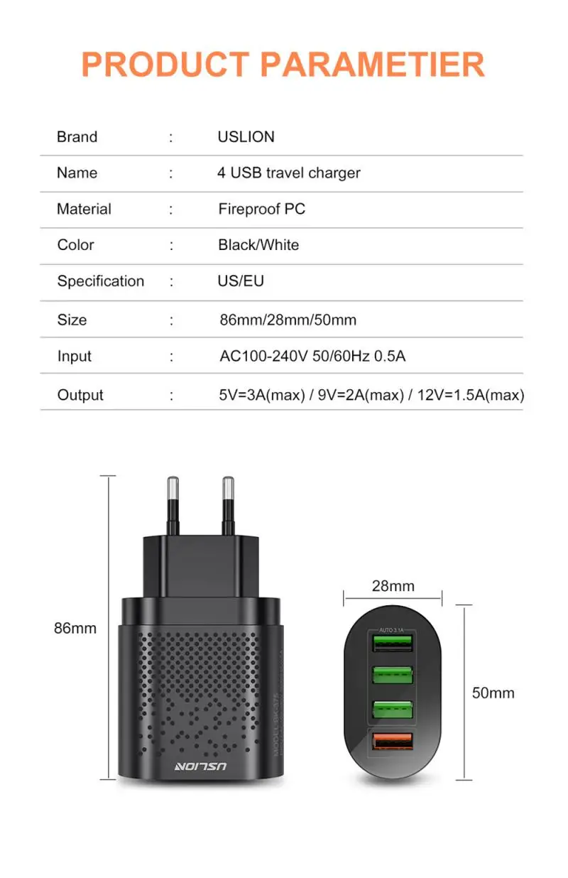 * Одновременно заряжайте 4 устройства с лучшей скоростью зарядки.