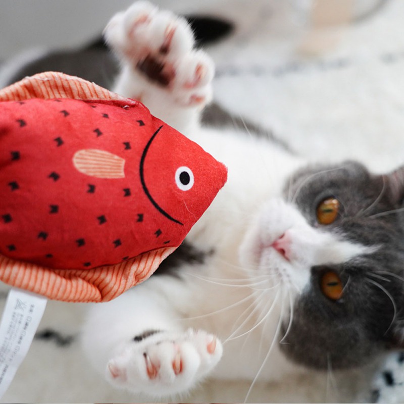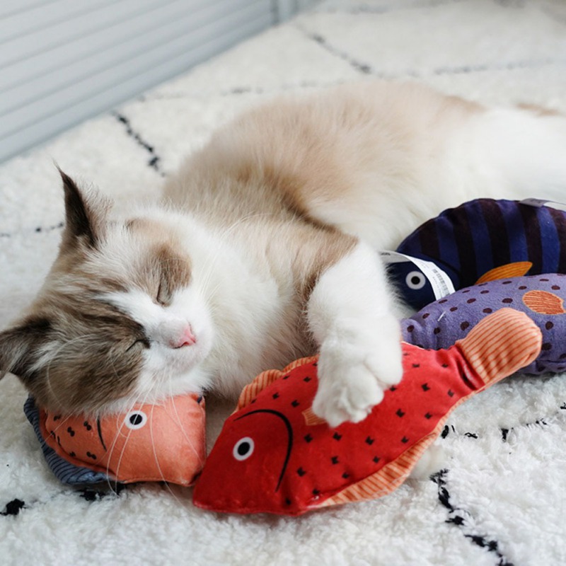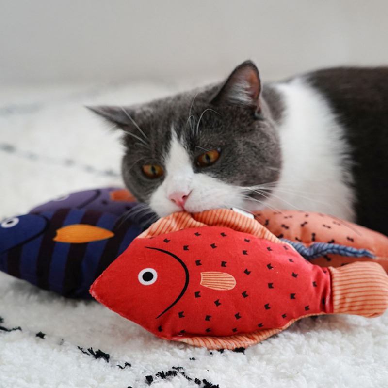 The fish are big enough that cat can roll around and wrestle with them but light enough that they can smack them across the floor and re-attack them.Your pets will always play with them all the time as company. Especially during the weekday, when you are busy at work.