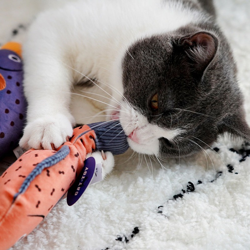 Fish head, body, and fish tail have been added catnip, easy to catch cat's interesting and perfect for biting chewing and kicking.