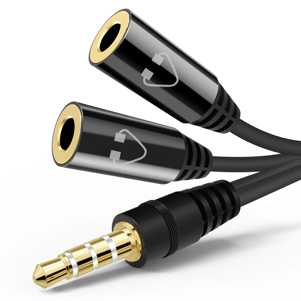 Обмен аудио. Адаптер-разветвитель аудиокабеля для наушников преобразует один стереоразъем 3,5 мм в два стереоразъема 3,5 мм. Дизайн типа Y позволяет делиться любимой музыкой, фильмами и играми с семьей и друзьями с одного устройства.