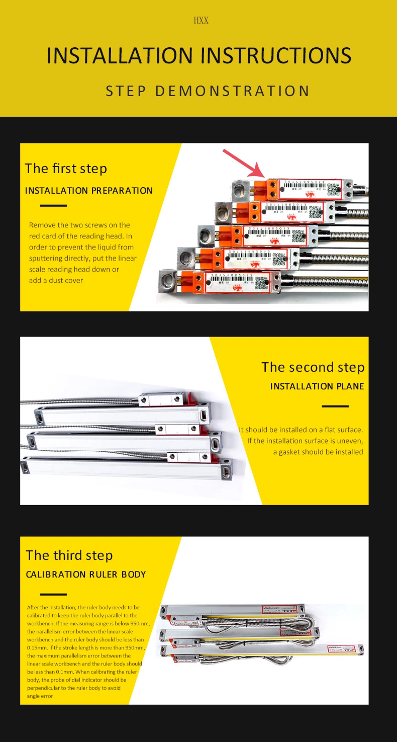 After placing the order, please note or leave a message to me the travel length of the linear scale you want. Then I will send you the goods you want as soon as possible.