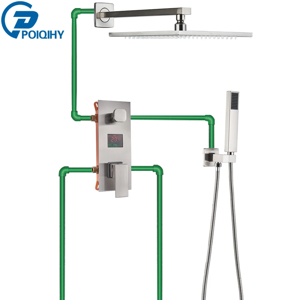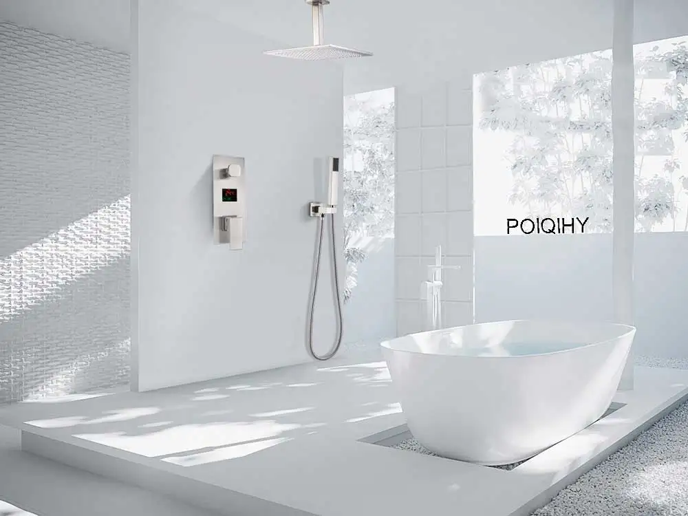 Клапан-смеситель для душа Особенности: цифровой дисплей температуры Душевая система Функция: Каждый вариант контролируется отдельно, поэтому вы не можете включить каждый из них одновременно. Материал: твердая латунь и керамический картридж Подключение: стандарты G1/2 (вход); G1/2 (выход) соединение Что такое цифровая Душевая система Температура в режиме реального времени может достигать температуры, когда вы открываете воду, заботясь о своей семье, не волнуйтесь, не осыпайте и не вспенивайте воду. Это полная гуманизация дизайна.