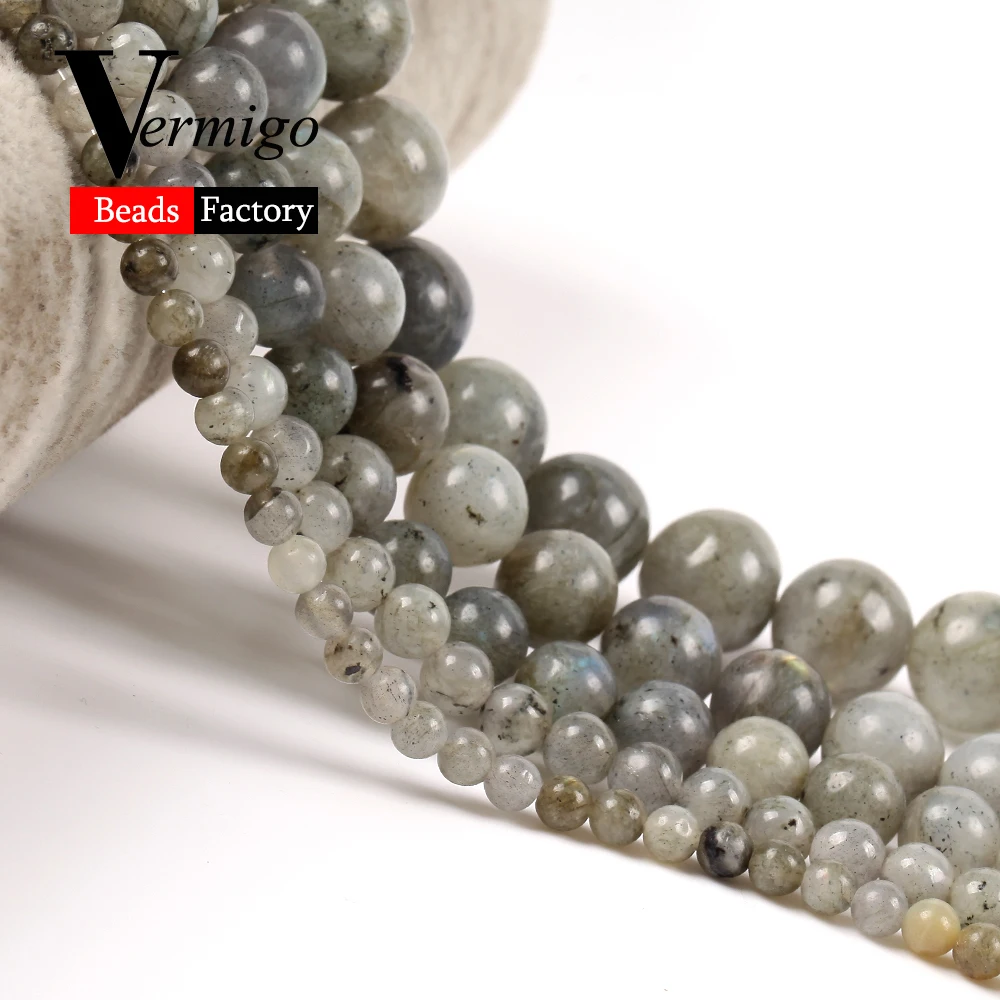 4 мм-12 мм круглые бусины из натурального серого Лабрадорита для изготовления ювелирных изделий браслет ожерелье ювелирные аксессуары 15"