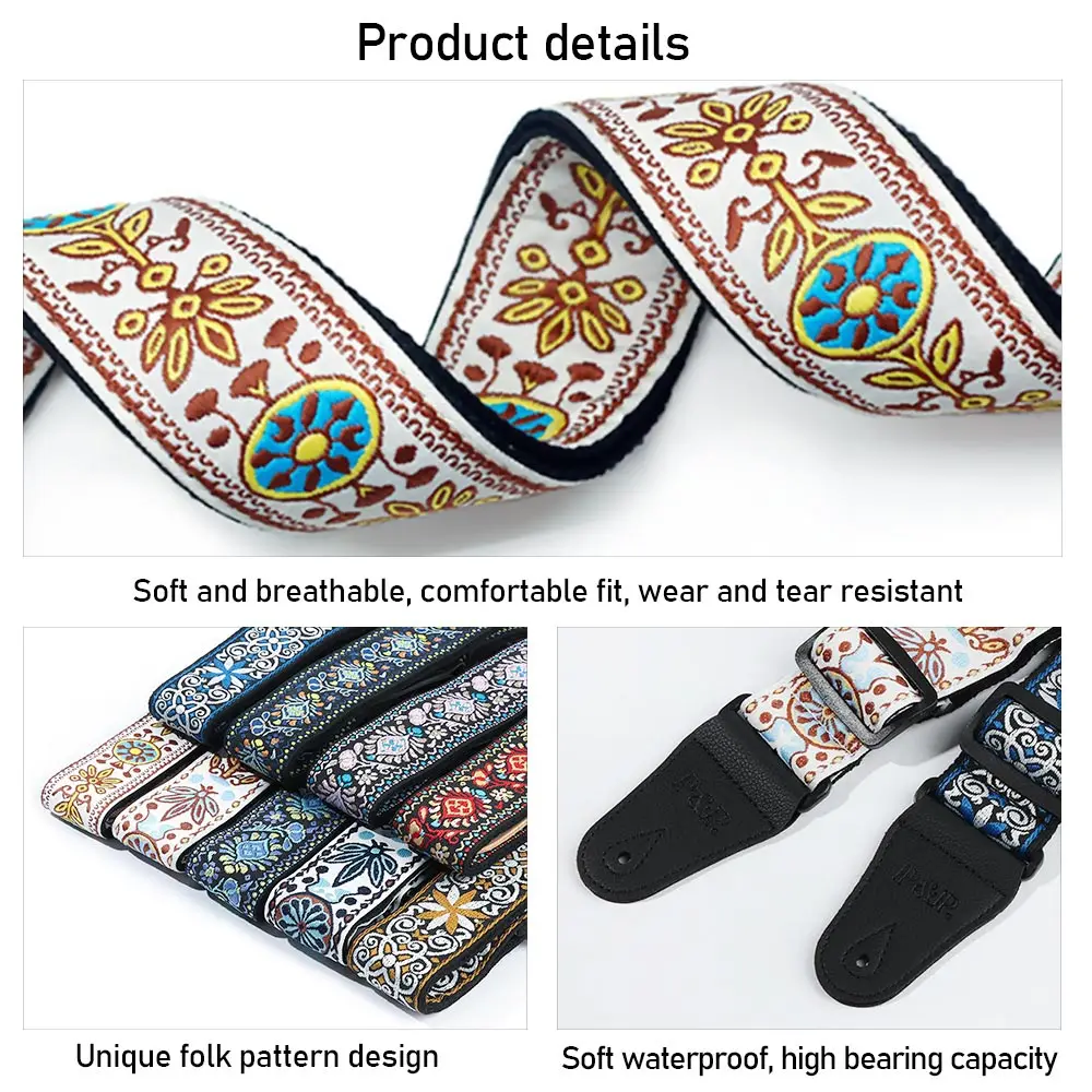 Горячая новинка Регулируемый гитарный ремень с вышивкой в национальном стиле бас наплечный ремень музыкальный инструмент бас электрический ремень для акустической гитары