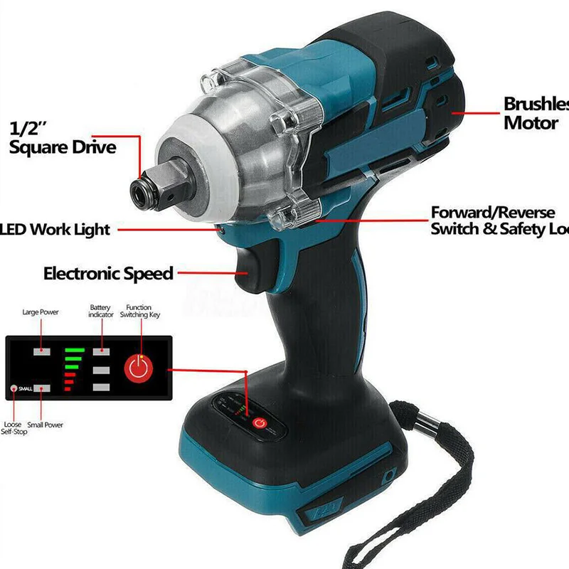 1/2 дюймовый Электрический ударный ключ бесщеточный беспроводной Перезаряжаемый гаечный ключ Электроинструмент совместим с 1 литий-ионным аккумулятором 18 в 1 Зарядка