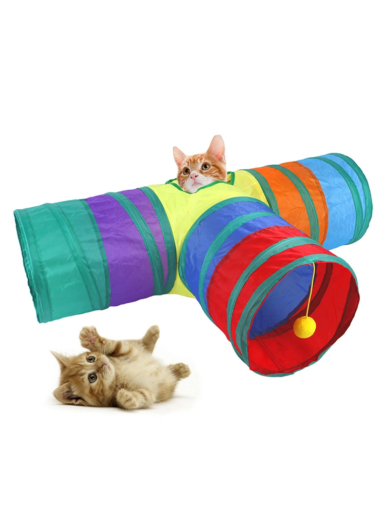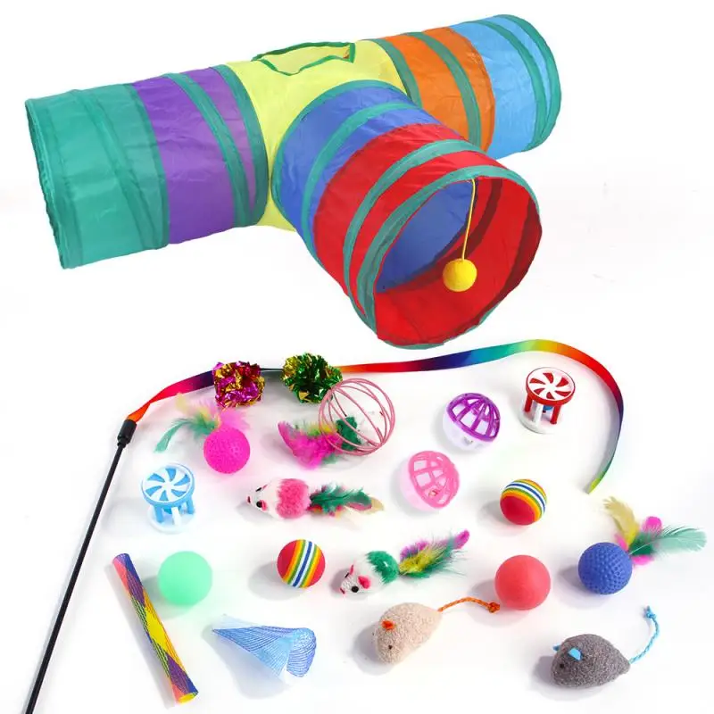 21 шт. набор игрушек для кошек, Радужный трехканальный туннель, веселые шары с перьями в форме мыши, интерактивные игровые принадлежности для домашних животных, аксессуары для кошек