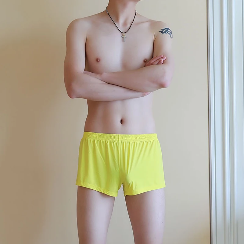 Для мужчин нижнее белье для мальчиков трусы-боксеры из ice silk Штаны, дышащий, прохладный лед, свободные, ультра-тонкий, сексуальный,