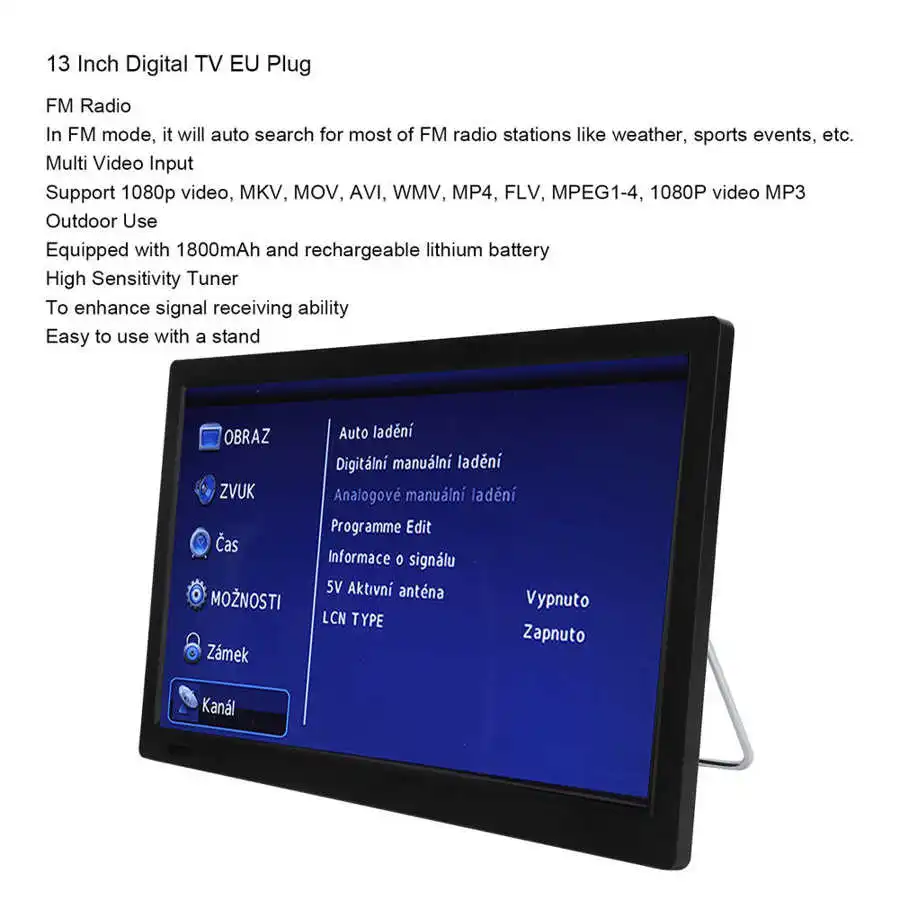 1. Портативный цифровой телевизор, размер экрана 16:09, поддержка аналогового ТВ, цифрового ТВ и телевизора.Спецификация: