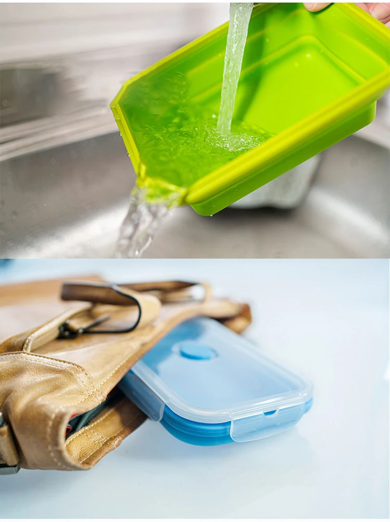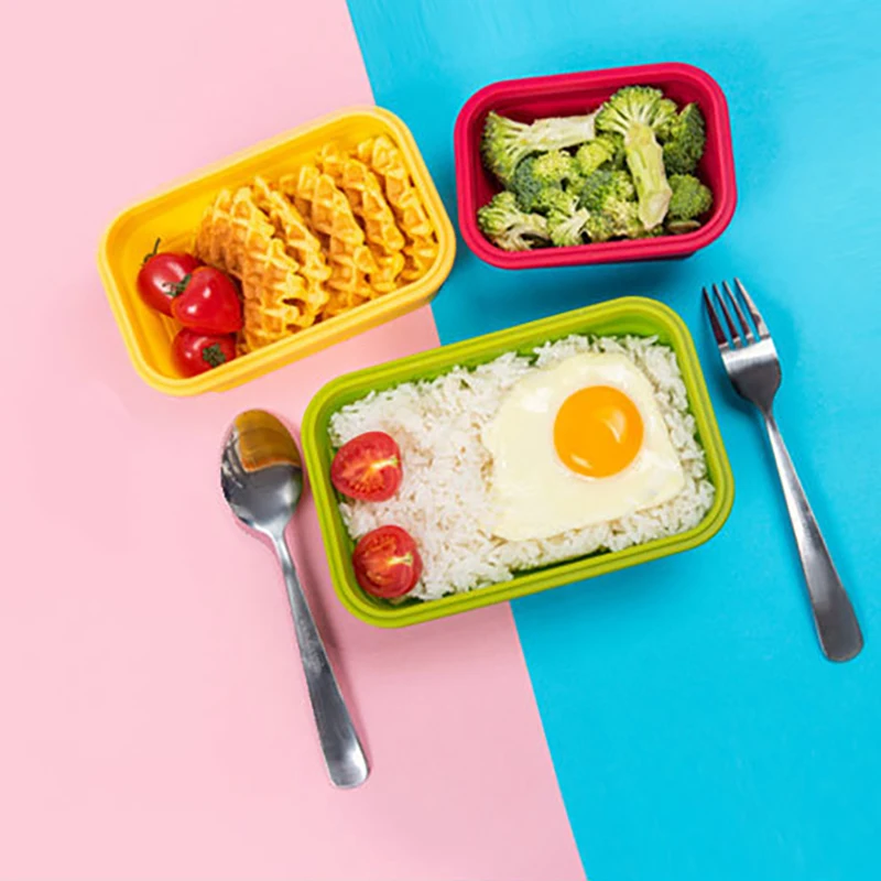 Silicone Folding Lunch Box Portable Bento Box For Student Office Worker Salad Fruit Food Storage Container