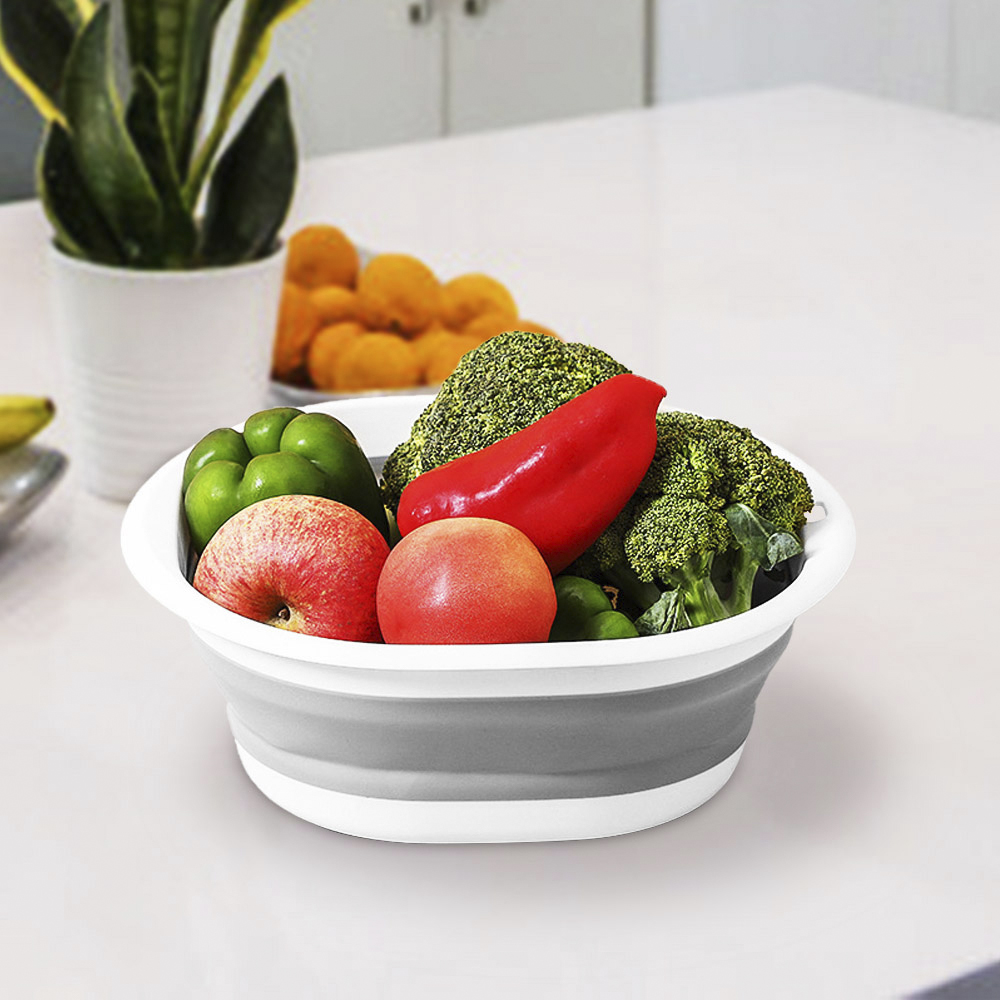 5. Многофункциональная: многофункциональная чаша, удобная для замачивания, слива разделочной доски, мытья и выгрузки фруктов и овощей. Складная конструкция позволяет использовать его на открытом воздухе, таких как кемпинг, туризм, барбекю, пикник, в палатке.