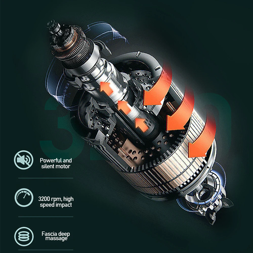 12 до 16 мм амплитуда, перкуссия, глубокая мышечная ткань для высвобождения мышц после физических упражнений и снятия боли, например, помогает снять напряженные мышцы, болезненность и жесткие спины, идеально подходит для физиотерапевта Или хиропрактики.