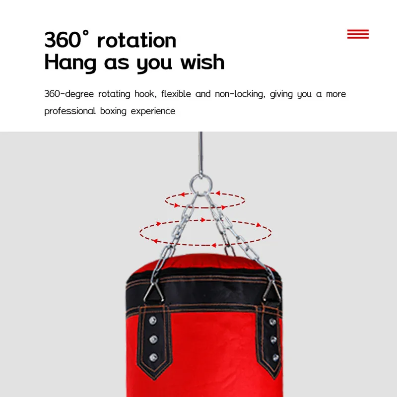 Features:[Adult hanging sandbag]:This bag is empty, you can fill it with sand, old useless cloth, cotton, sponge, etc. The chain is packed in a boxing bag. [use]:Boxing bags are used for boxing, MMA, Muay Thai and contact sports athletes to practice kicking, footwork and boxing. Very suitable for the development of hand and foot skills and shaping the body. [Rough metal chain]:We use the highest quality steel and thick metal chain. The optimized weight is twice that of the unupgraded version on the market. It is more durable and provides you with a more stable and safe boxing experience. [High-quality stitching technology] :The stitching is firm and delicate. The metal buckle can firmly connect the sandbag and the metal chain. Zipper seal, convenient and safe. The metal chain is durable and can be hung on the wall. [Material] :This heavy sandbag is made of high-quality canvas fabric, wear-resistant and durable, and can be used for many years. The PU patch in the middle is smooth enough to protect your hands from wear. Package includes: 1pc Boxing Sandbag 1 pair Boxing gloves 1pc wrist wrap 1 pair palm braces 1 pair wrist sleeves 1pc chain