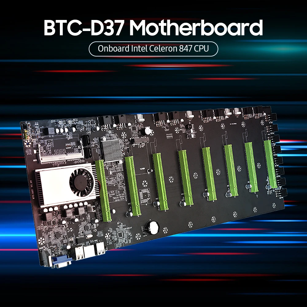 BTC-D37 материнская плата с встроенной Intel Celeron 847 CPU 8 PCI-E 16X Слоты гигабитная сеть VGA + HD порты Поддержка 8 видеокарт