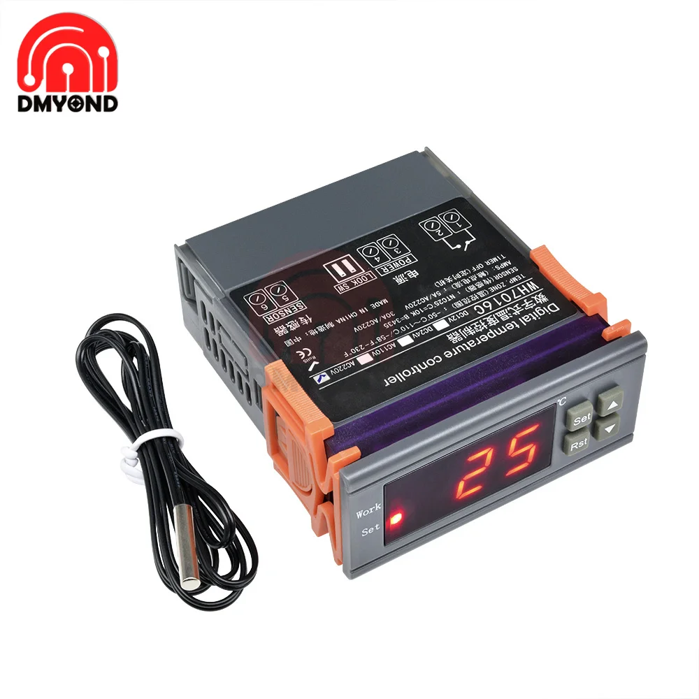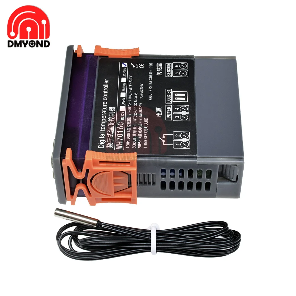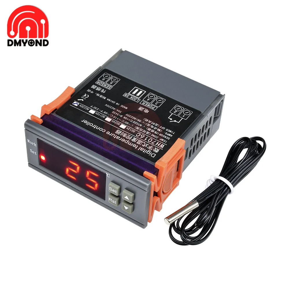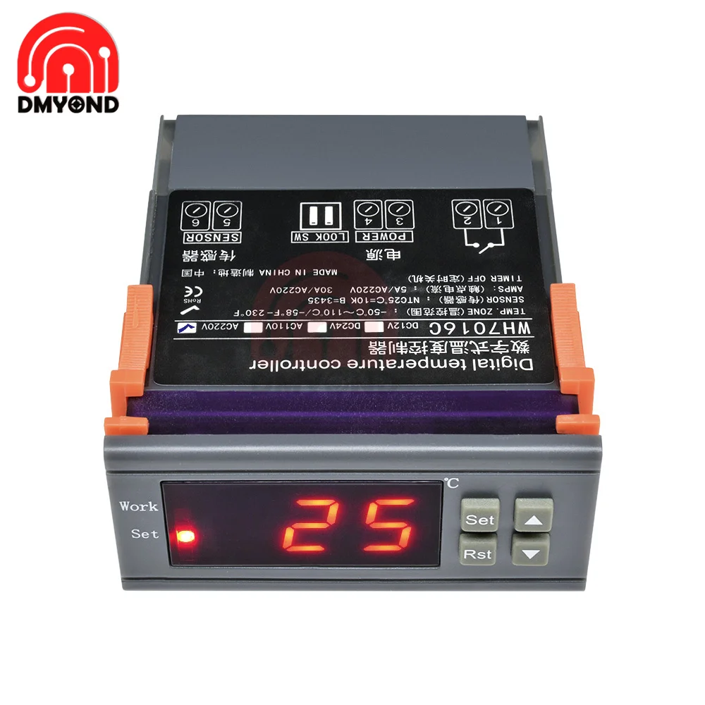 WH7016C цифровой регулятор температуры 110 В 220 в 12 В 24 В терморегулятор Термостат переключатель термометр Нагреватель Охладитель 90 В-250 В