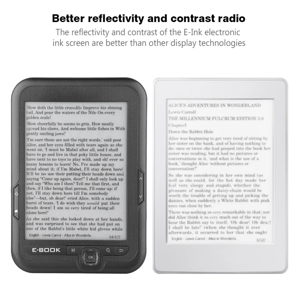 Этот продукт использует Электронный чернильный электронный экран, который имеет преимущества читаемости, гибкости и низкого энергопотребления. По сравнению с другими технологиями отображения, электронные чернила экраны имеют лучшую отражательную способность и контрастность. Они выглядят как чернила на бумаге и являются удобным средством для людей, чтобы читать и обрабатывать. Другие материалы дисплея чувствуют себя немного светильник и трудно читать под сильный светильник, включая прямой солнечный светильник. Напротив, электронные дисплеи на основе чернил очень легко видеть и читать.