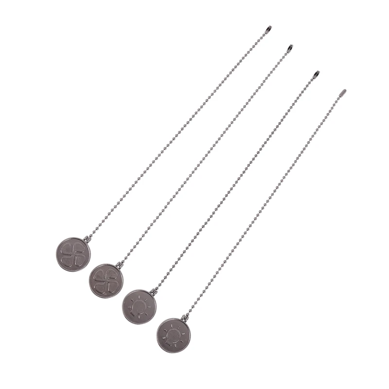 Простота в использовании: удлинители потолочной цепи спроектированы с ребристыми краями монет, двухсторонним вентилятором и узором лампы; Их легко идентифицировать по различным узорам, чтобы узнать, какой из них является правильным переключателем; очень интуитивно понятный и не легко ржавеет
